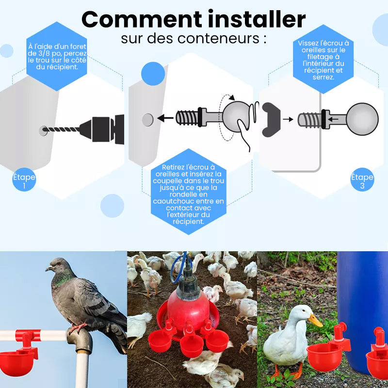 Large gamme d'utilisation: le bol à boire est conçu avec une grande taille de tasse, env. 3 pouces de diamètre de tasse, les bols conviennent au poulet, aux canards, aux dindes, aux oiseaux et ainsi de suite, ils seront vos articles pratiques et utiles.