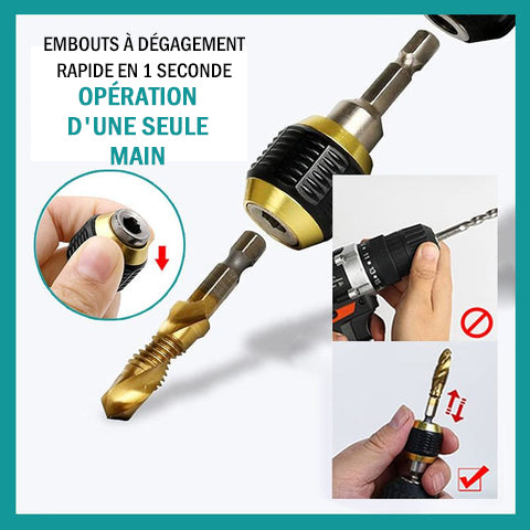 Grâce à cet accouplement de foret hexagonal à dégagement rapide, le foret peut être éjecté en une seconde, ce qui améliore considérablement l'efficacité et fait gagner du temps.