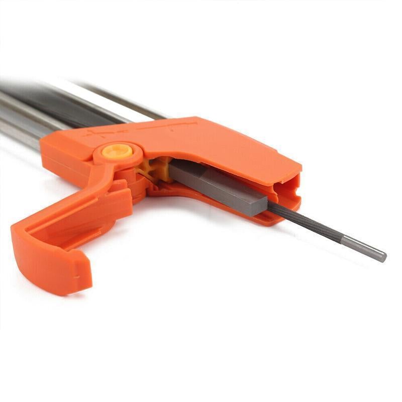 Outil pratique pour affûter rapidement les dents et la jauge de profondeur en une seule étape.