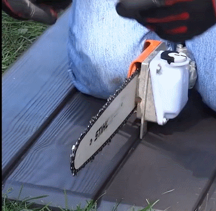 Facile à utiliser : il suffit de fixer la tronçonneuse à l'affûteur, puis d'appuyer les deux extrémités de l'affûteur sur une surface solide pendant 3 à 5 secondes tout en démarrant la tronçonneuse.