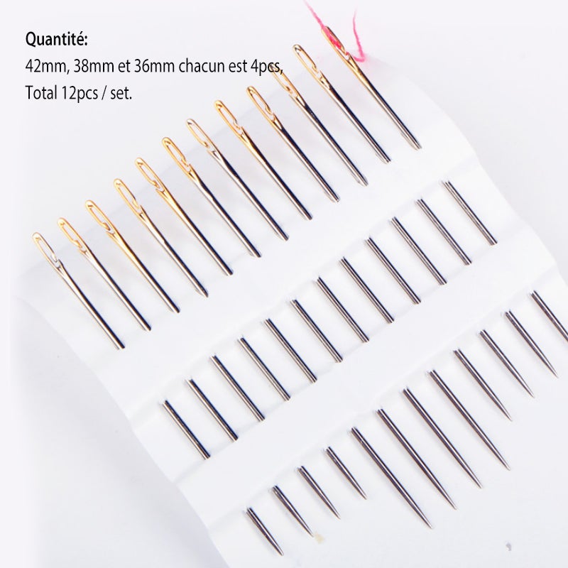 - C'est bon pour faire du bon travail manuel. Toutes sortes d'aiguilles en acier répondent à différents besoins manuels. Convient aux plus grands travaux de broderie, de couture, de courtepointe, de reprise, etc.