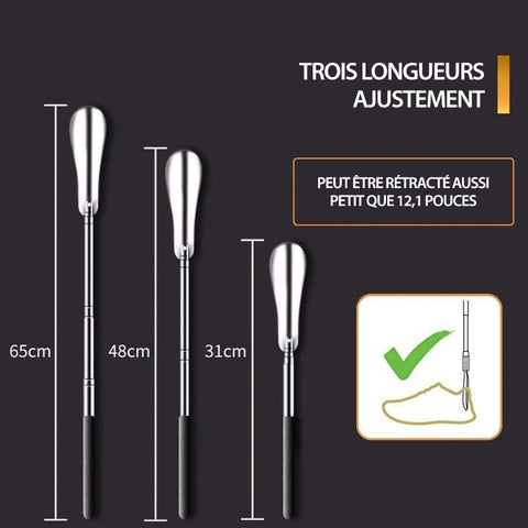 Le chausse-pied rétractable à trois longueurs peut être utilisé par des personnes de différentes hauteurs, vous offrant une vie plus pratique!!