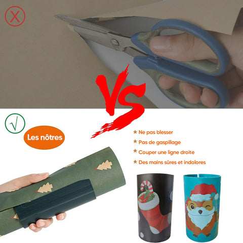 type de papier d'emballage. Il suffit de le placer autour d'un tube de papier d'emballage et de le faire glisser vers le bas pour le couper.