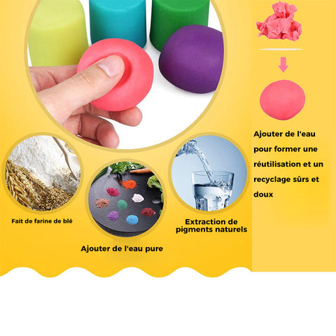 [Non toxique/durcissant] --- L'argile et la pâte sont fabriquées à partir de farine de blé naturelle pure et douce pour l'environnement avec des caractéristiques respectueuses de la peau, faciles à façonner et réutilisables. Non toxique, inodore, durable et sans danger pour vos enfants. ne nécessite aucun assemblage ni piles.