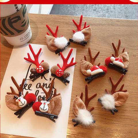 - 1 paire × Épingles à Cheveux en Peluche de Noël New Antler