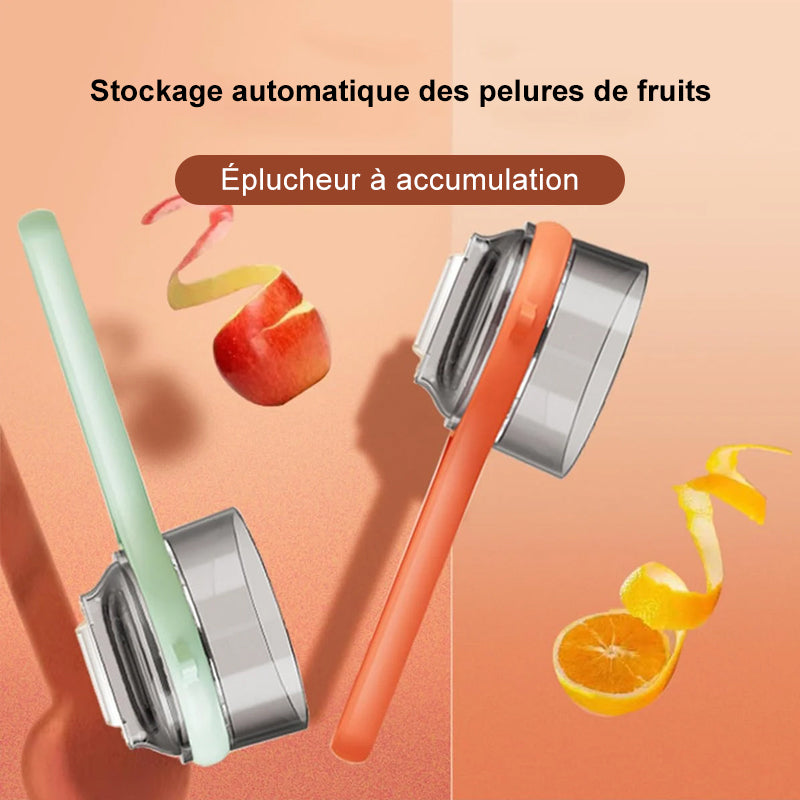 Epluche-légumes avec: Épluchez facilement les légumes et les fruits grâce à l'épluche-légumes, qui est livré avec un récipient facile à ranger.