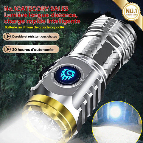 LONGUE DURÉE DE VIE DE LA BATTERIE: Grâce à une gestion efficace de l'énergie, cette lampe de poche offre une longue durée de vie de la batterie, de sorte qu'elle est prête quand vous l'êtes. La très grande capacité de la batterie permet à la lampe de poche de rester complètement chargée et de vous éclairer en permanence.