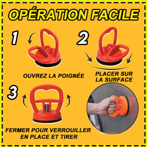 Ce lÚve-ventouse pratique est doté de poignées de verrouillage robustes avec une action de pompe à une seule course pour plus de commodité. N'importe qui peut réparer les bosses en suivant les étapes simples d'utilisation.