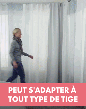 Flexible et polyvalent pour une application illimitée, ajustez-le pour accrocher et tenir parfaitement tout type de tringle à rideau tout en permettant une installation sûre et transparente ne nécessitant ni perceuses ni clous!