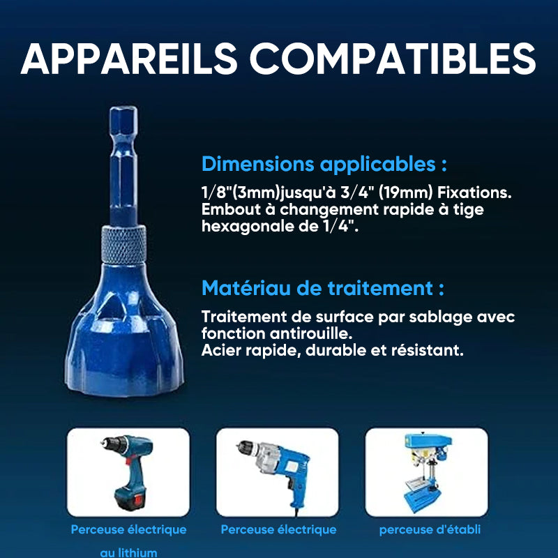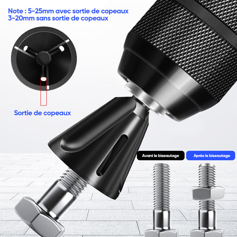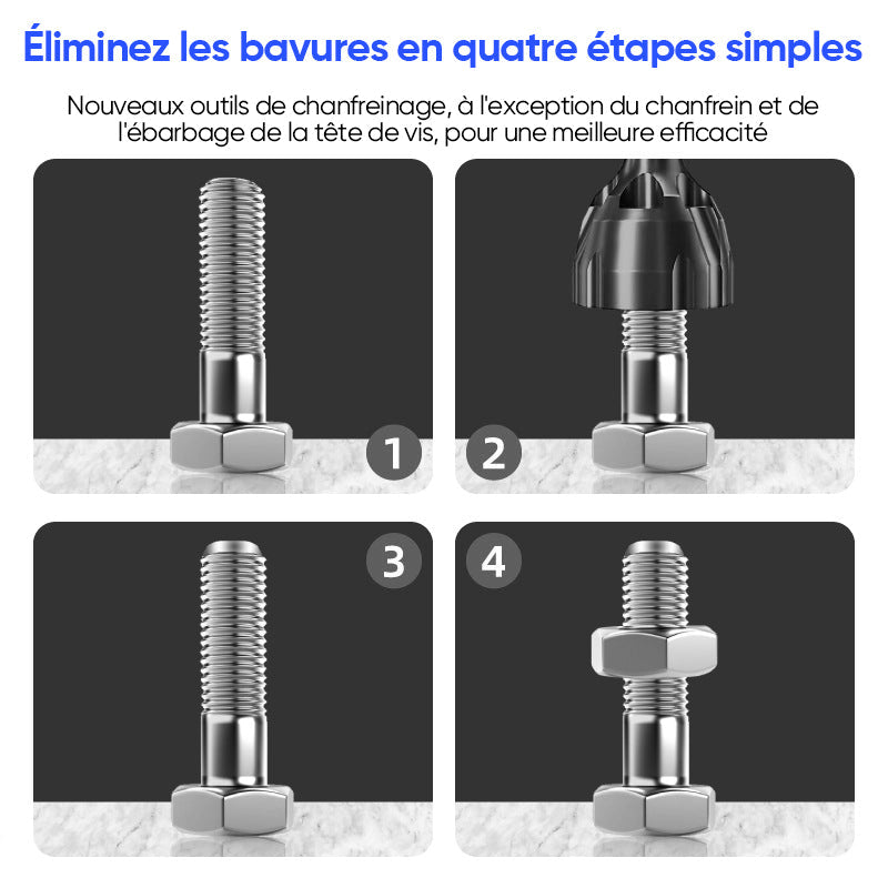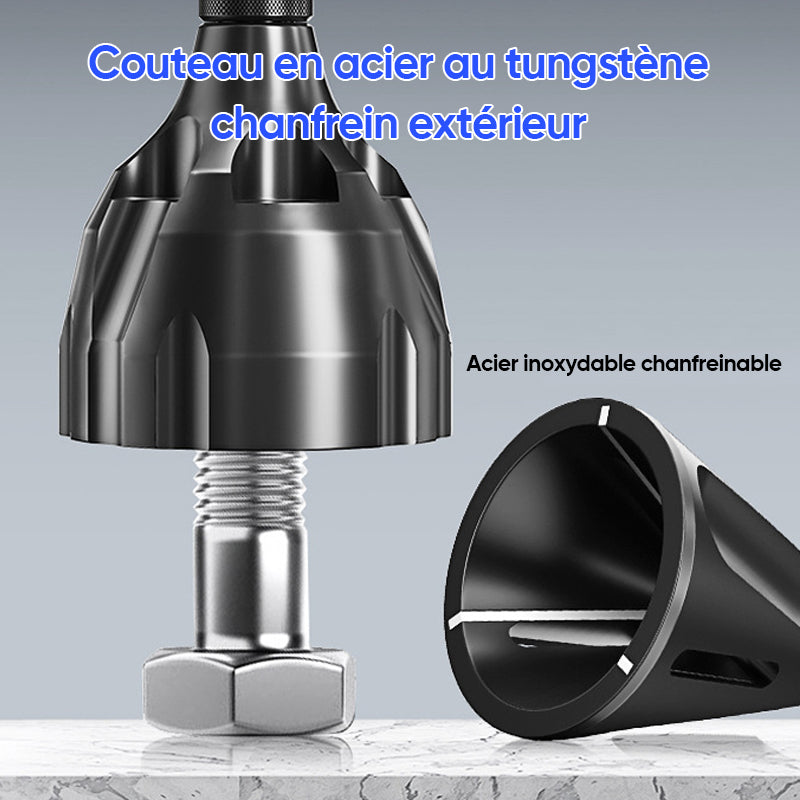 【Sûr et efficace】Cet outil d'ébavurage et de chanfreinage externe rase facilement les bords extérieurs d'un boulon aplati. Il suffit de le fixer à une perceuse électrique et d'appliquer une légère pression sur la tête du boulon. Simplifie le processus de réparation et élimine la nécessité de remplacer des pièces coûteuses ou difficiles à trouver.