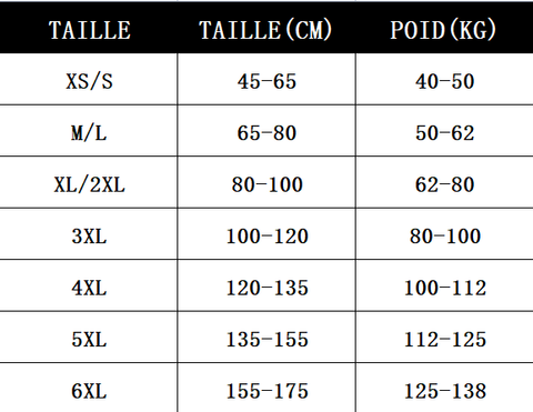 Veuillez choisir une taille en fonction de votre tour de taille.