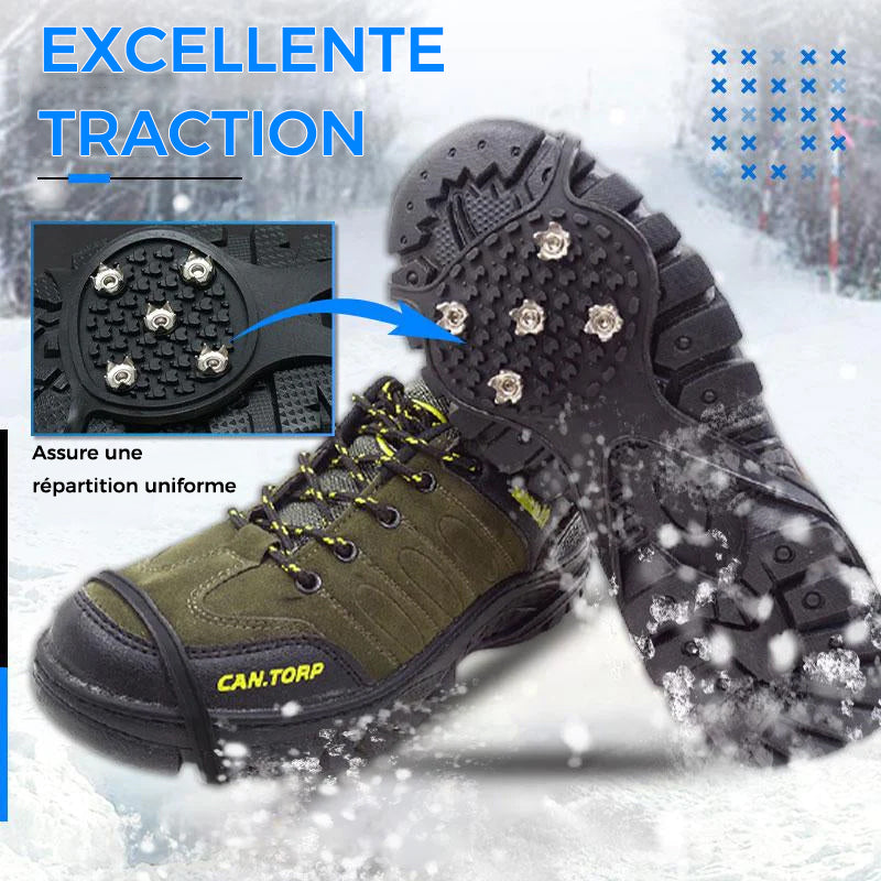 [Ongles antidérapants à 5 griffes] Les clous en acier à 5 dents résistants à l’usure peuvent fournir une excellente traction sur divers terrains ou dans d’autres conditions difficiles. Le placement stratégique des ongles assure une répartition uniforme du poids et un confort et une durabilité durables.