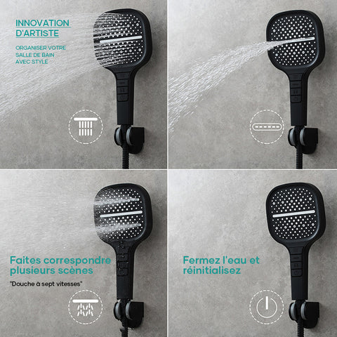 Y compris : Massage, Saturation, Brumisateur, Pause, etc., vous ne pouvez pas tous les utiliser, mais vous les avez sans frais supplémentaires. 7 fonctions différentes puissantes et une expérience de douche choquante.