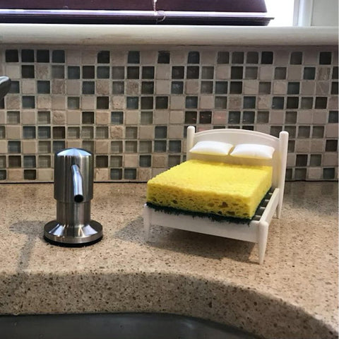 Porte-éponge de cuisine rêveur - Une fois la vaisselle propre et brillante, posez votre éponge dans son lit et laissez-la dormir tranquillement. Un porte-éponge pour l'évier de la cuisine - si confortable que votre éponge devient lucide ! Qui a dit que votre éponge ne pouvait pas avoir un lit agréable et confortable après avoir travaillé toute la journée ? Ce cadeau excentrique est livré avec deux coussins pour un confort optimal, et convient à toutes les tailles de brosses standard. C'est amusant, c'est fonctionnel, c'est de cela que sont faits les rêves !