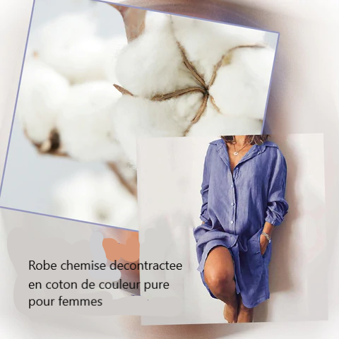 Robe Chemise Décontractée de Couleur Pure pour Femmes
